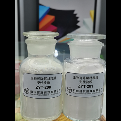 本品可以直接使用到生物可降解材料中去,也可以将本品制成淀粉母粒后再使用到生物可降解材料中去;与其他生物可降解材料共同使用时,可以明显降低生产成本。