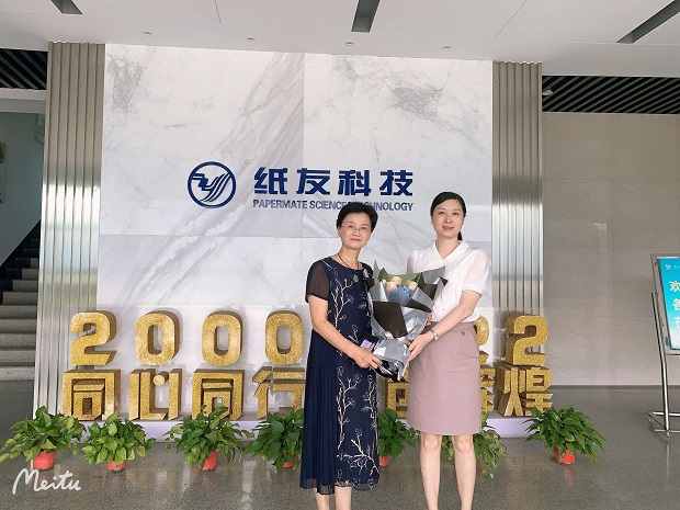 9月27日上午,钱塘区副区长潘伟红、区教育局副局长金加喜等领导一行莅临杭州纸友科技有限公司进行高层次人才及企业走访,并慰问了杭州纸友科技有限公司创始人郑丽萍。郑丽萍陪同领导参观了公司展厅,详细介绍了公司的发展历程并表达了自己与钱塘的特殊联系。座谈会上,潘区长对郑丽萍这类扎根钱塘区的科技类人才表示由衷感谢,并表达了区领导对高层次人才的敬意!潘区长表示,一直以来钱塘区坚持产业立区、创新驱动,着力构建具有国际竞争力的现代化产业新体系,希望区里高层次人才能树立“我们都是钱塘人”的身份认同,发挥钱塘产业发展的驱动作用,与钱塘区互相成就、共进共富,为我区进一步聚集人才、创新资源、推动产业转型发展,加快建设现代化国际化一流新区贡献智慧力量。